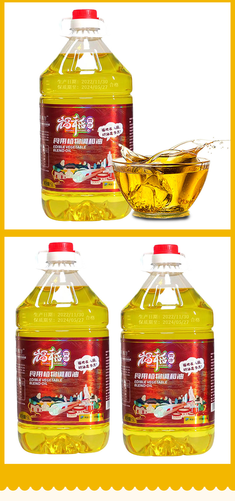 厂家定制福稻四方大豆食用植物调和油5L瓶装物理压榨植物油食用油