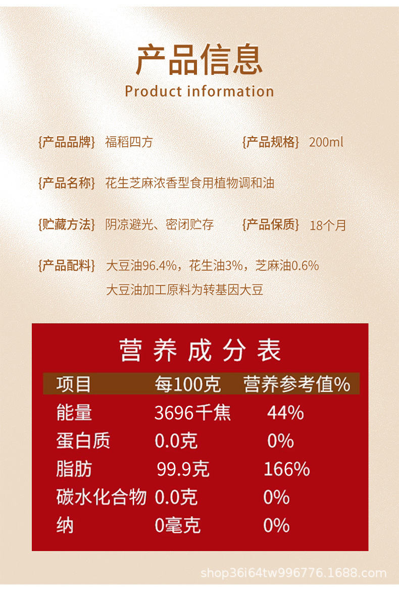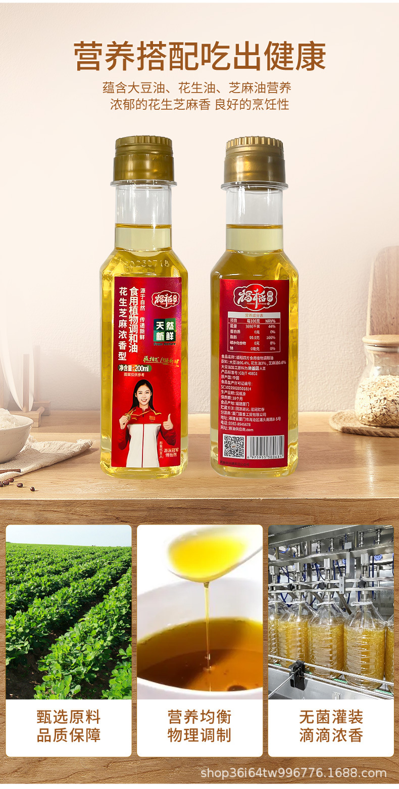 福稻四方花生芝麻香型食用植物调和油 200ML官方直售家用烹饪炒菜